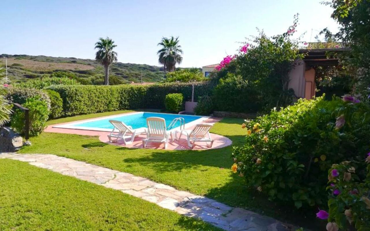 Villetta a schiera a Stintino con ampio giardino, due camere da letto e due terrazze vista mare.
